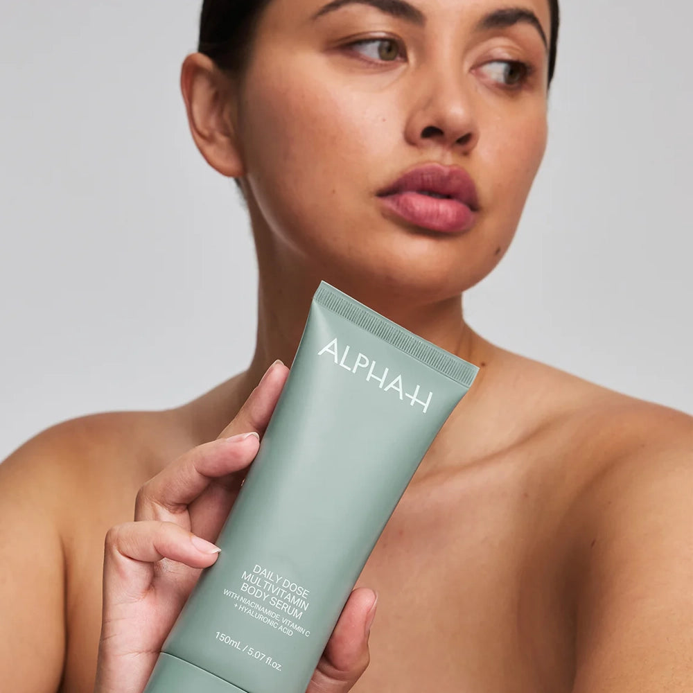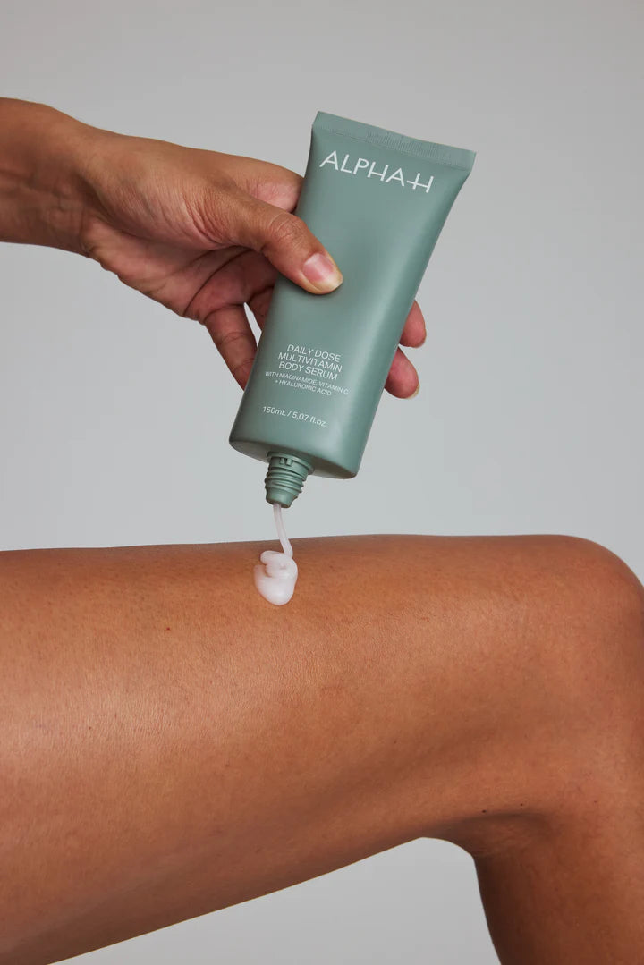 Een lichtgewicht body serum met 5% niacinamide, vitamine C en E, hyaluronzuur en polyglutaminezuur. Hydrateert, verstevigt en egaliseert zonder vettig laagje.