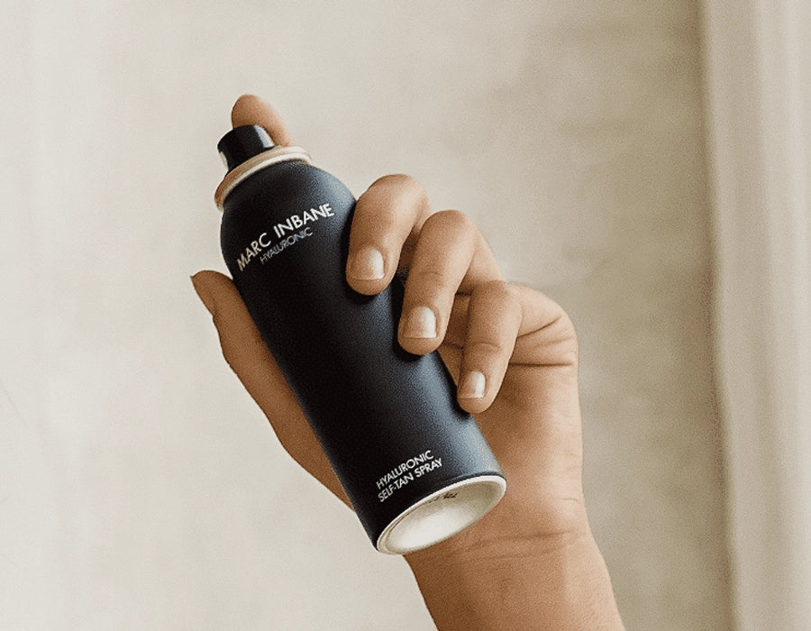 Innovatieve self-tan spray met hyaluronzuur voor een gehydrateerde, gebruinde teint.